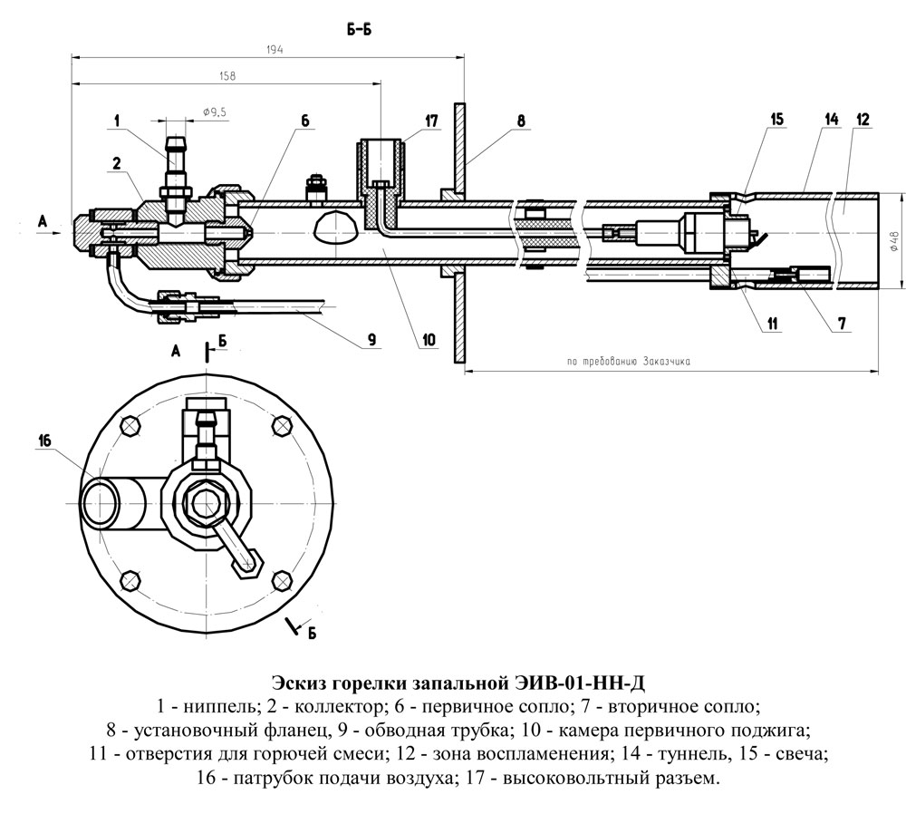 Эскиз запальной горелки ЭИВ-01-НН-ДФ: